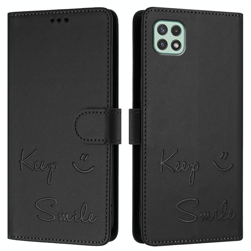 Για Samsung Galaxy A22 5G / A22s / F42 5G Smile ανάγλυφο RFID δερμάτινη θήκη τηλεφώνου (Μαύρο)
