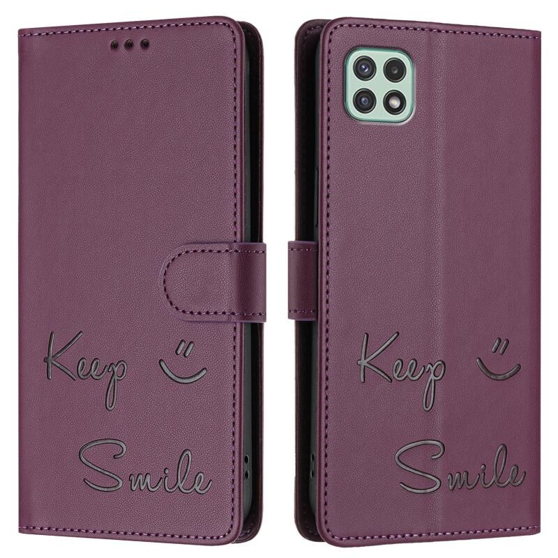 Για Samsung Galaxy A22 5G / A22s / F42 5G Smile ανάγλυφο RFID δερμάτινη θήκη τηλεφώνου (Violet)