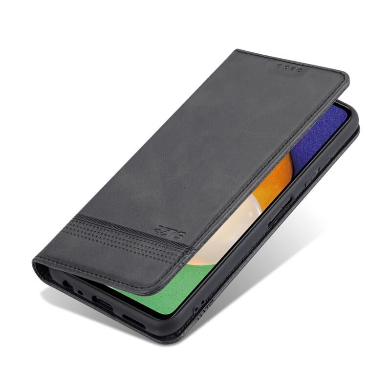 Για Samsung Galaxy A22 5G AZNS Μαγνητικό μοσχάρι υφή οριζόντια Flip δερμάτινη θήκη με υποδοχές για κάρτες & κάτοχος & πορτοφόλι (Μαύρο) (AZNS)