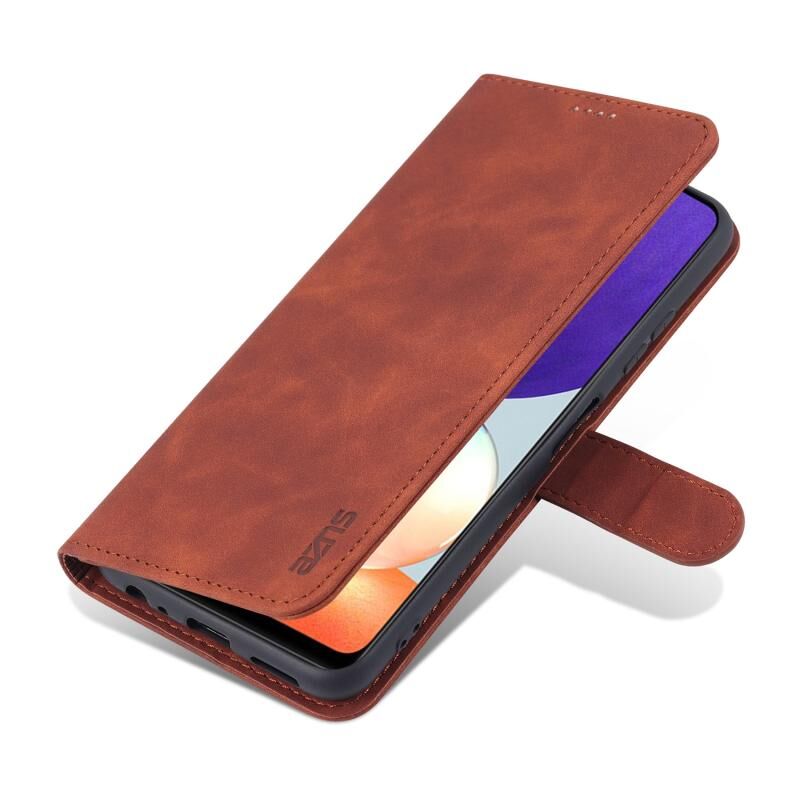 Για Samsung Galaxy A22 5G AZNS δέρμα αίσθηση μοσχάρι υφή οριζόντια Flip δερμάτινη θήκη με υποδοχές για κάρτες & κάτοχος & πορτοφόλι (καφέ) (AZNS)