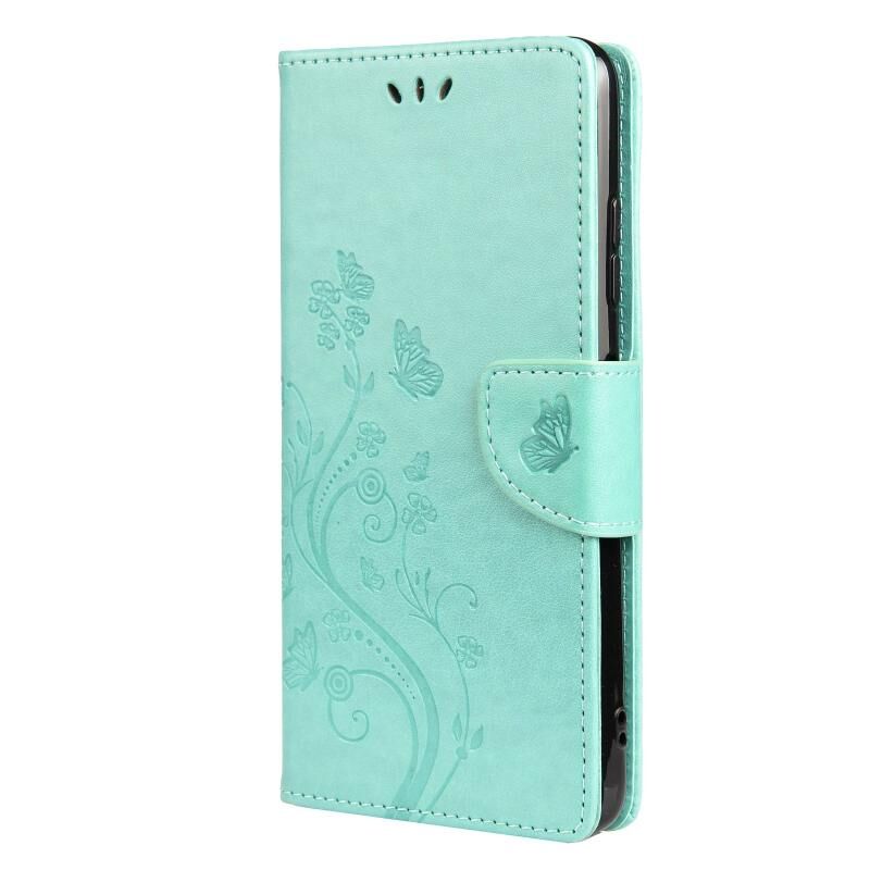 Θήκη Samsung Galaxy A22 5G, Δερμάτινη οριζόντια θήκη με σχέδιο πεταλούδας και λουλουδιών, με βάση στήριξης & θήκες για κάρτες & πορτοφόλι (Ανοιχτό Μωβ)