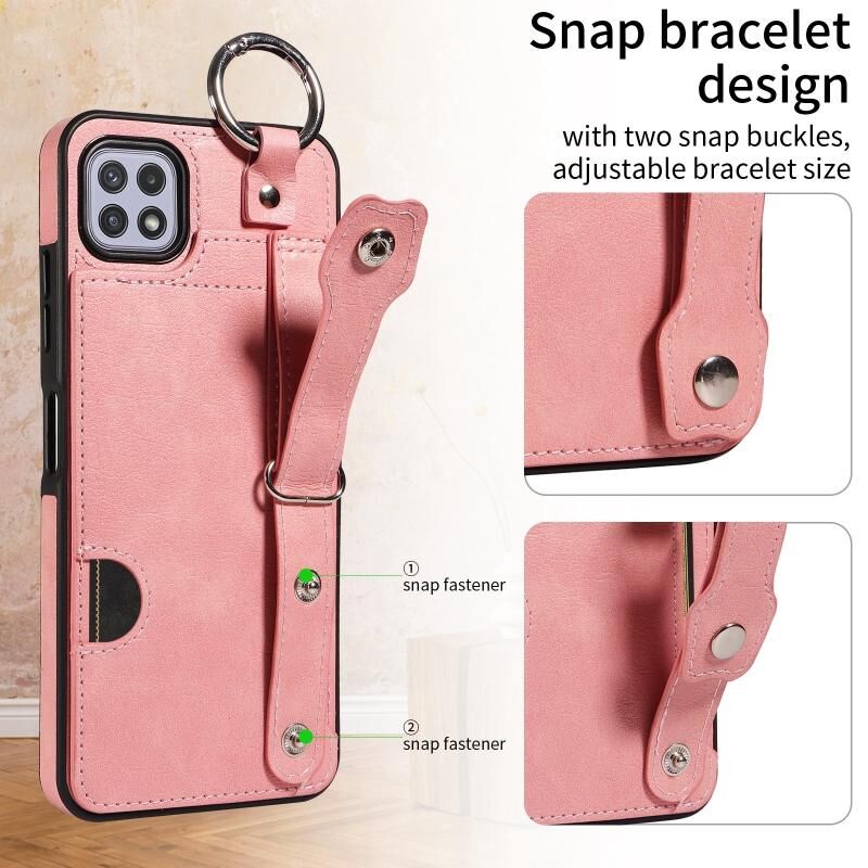 Για Samsung Galaxy A22 5G μοσχάρι υφή καρπού κάρτα Slot δαχτυλίδι υπόθεση τηλεφώνου (ροζ)
