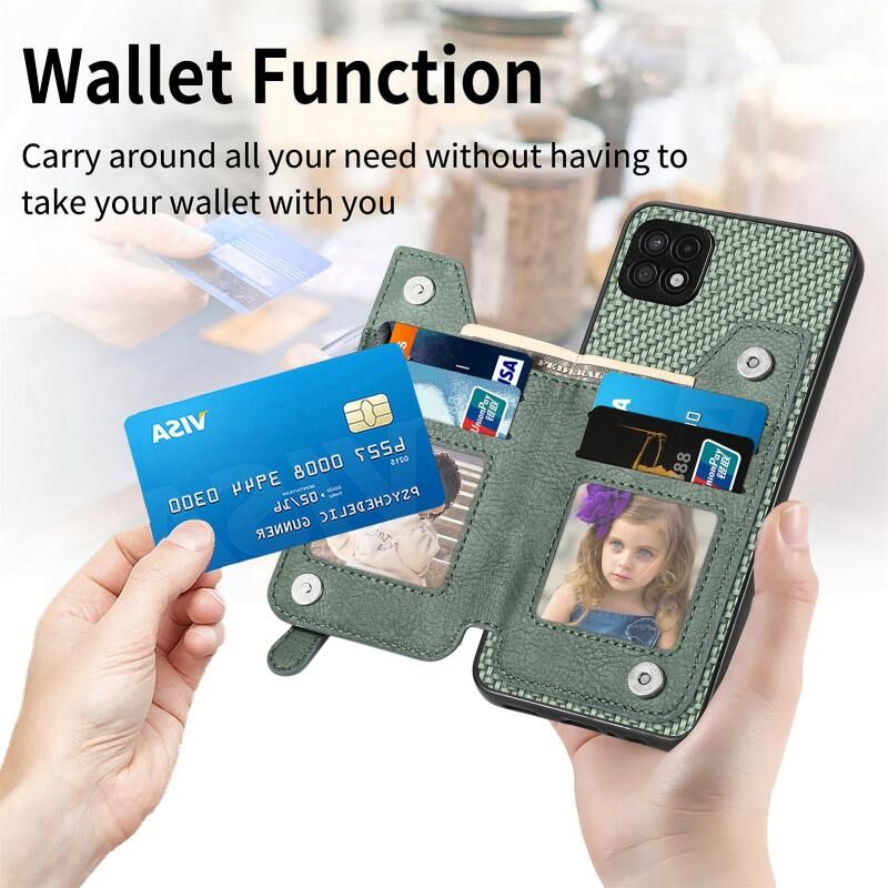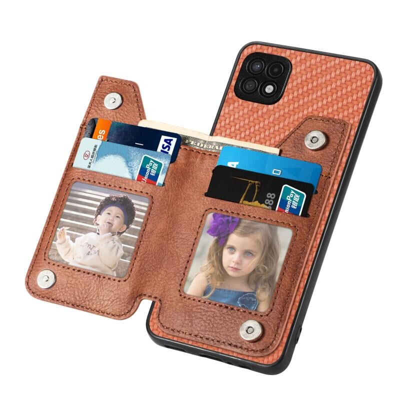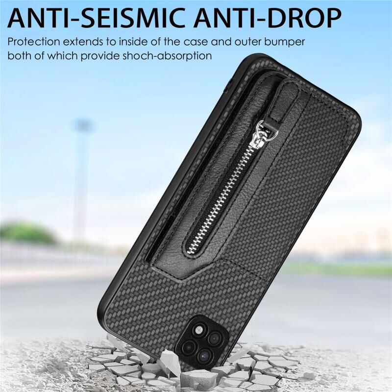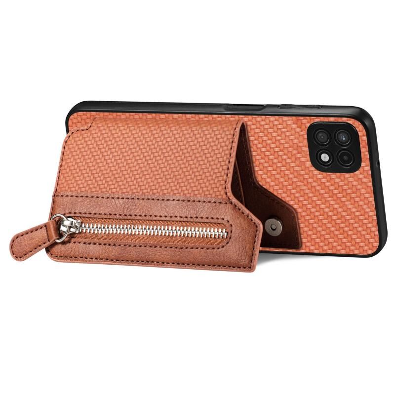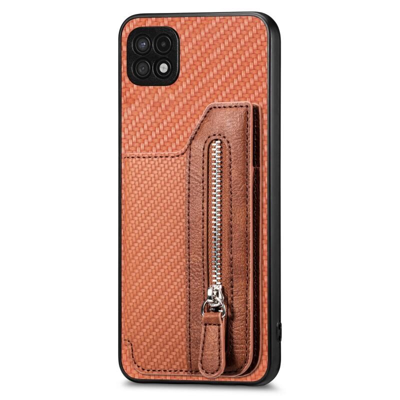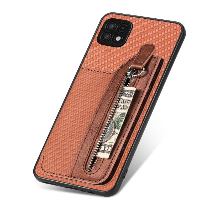 Για Samsung Galaxy A22 5G ινών άνθρακα οριζόντια Flip φερμουάρ πορτοφόλι τηλέφωνο υπόθεση (Καφέ)
