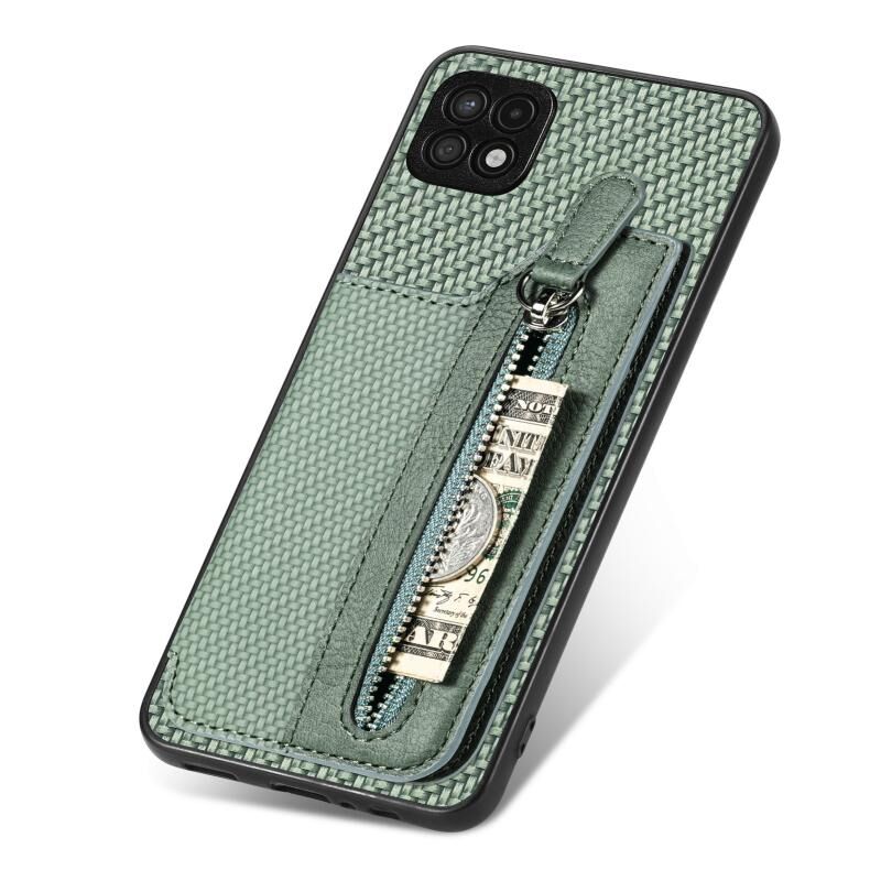 Για Samsung Galaxy A22 5G ινών άνθρακα οριζόντια Flip φερμουάρ πορτοφόλι τηλέφωνο υπόθεση (πράσινο)