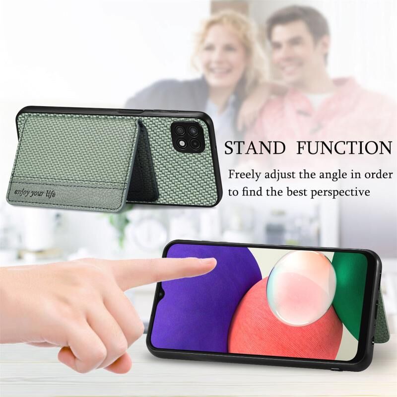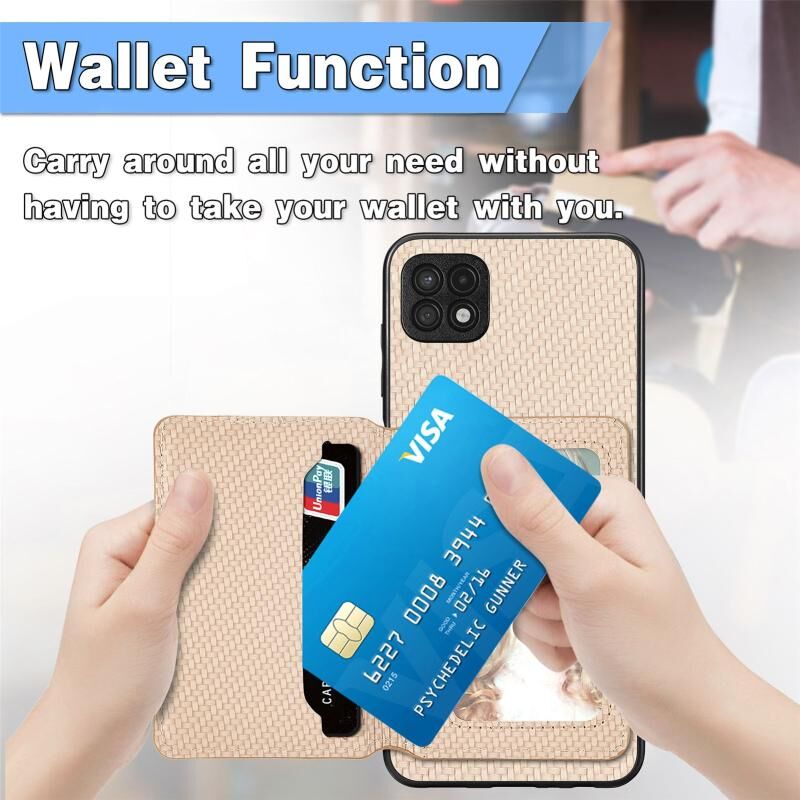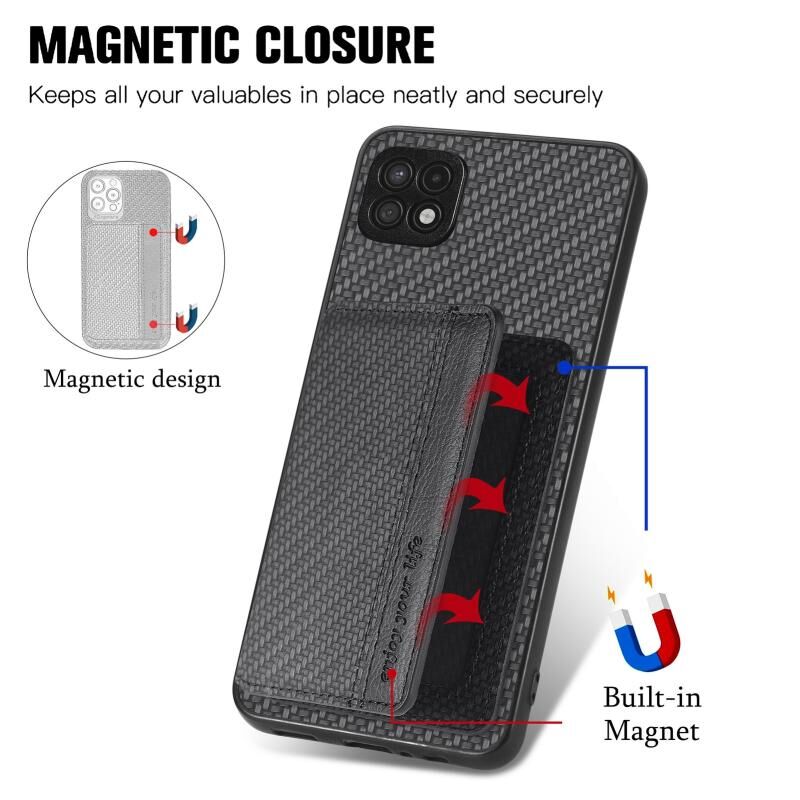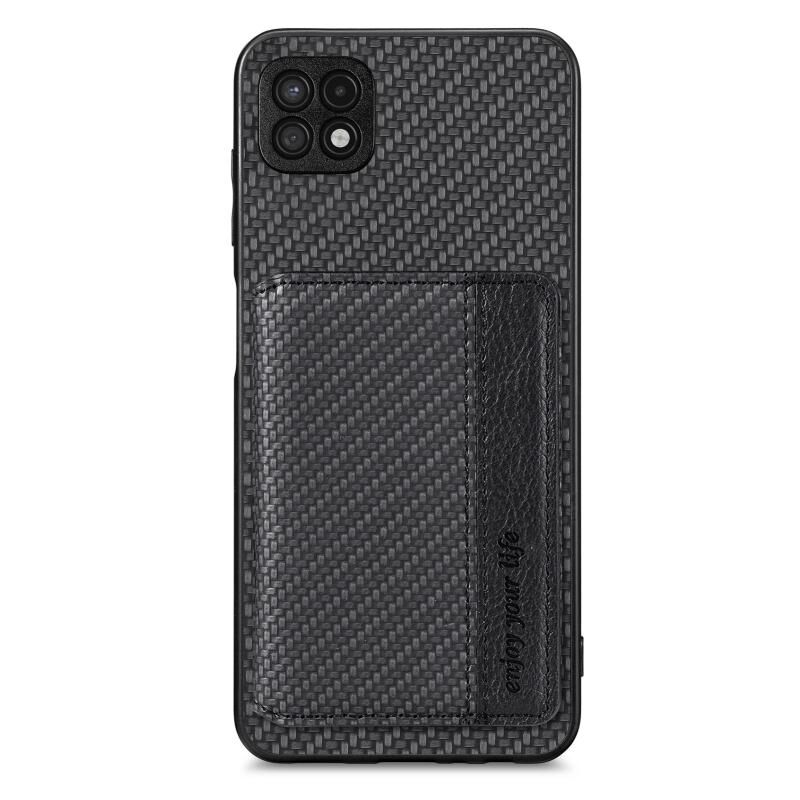 Για Samsung Galaxy A22 5G ινών άνθρακα μαγνητική κάρτα πορτοφόλι τσάντα πορτοφόλι υπόθεση τηλεφώνου (Μαύρο)