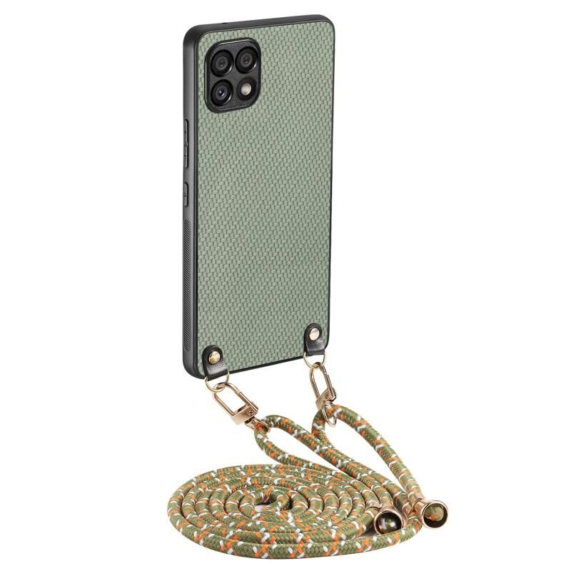 Για Samsung Galaxy A22 5G Carbon Fiber Texture δέρμα πίσω κάλυμμα υπόθεση τηλεφώνου με λουράκι σταυρού (πράσινο)