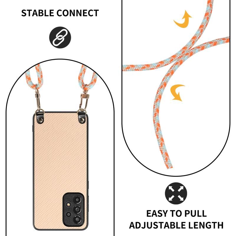 Για Samsung Galaxy A22 5G Carbon Fiber Texture δέρμα πίσω κάλυμμα τηλέφωνο υπόθεση με λουράκι σταυρού (χακί)