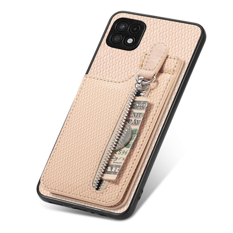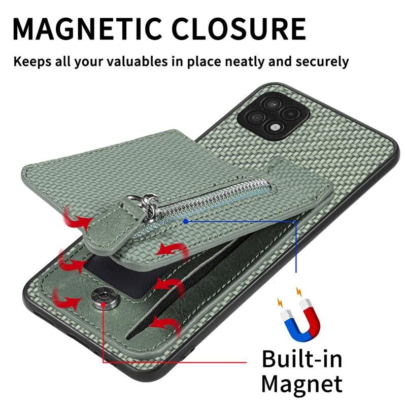 Για Samsung Galaxy A22 5G ινών άνθρακα 5G Κάθετη Flip φερμουάρ τηλέφωνο υπόθεση (Χακί)