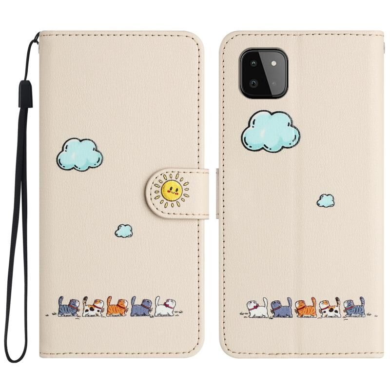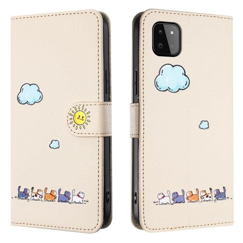 Θήκη τηλεφώνου Samsung Galaxy A22 5G από δέρμα με σχέδια χαριτωμένων γατών (Κόκκινο)