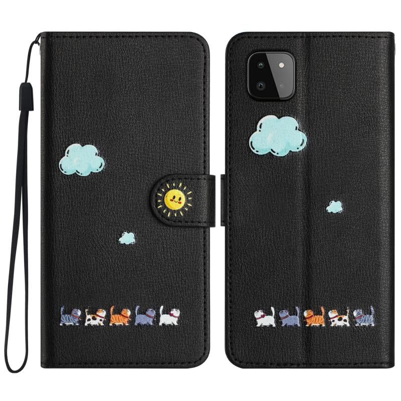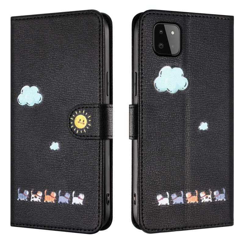 Θήκη τηλεφώνου Samsung Galaxy A22 5G από δέρμα με σχέδια χαριτωμένων γατών (Κόκκινο)