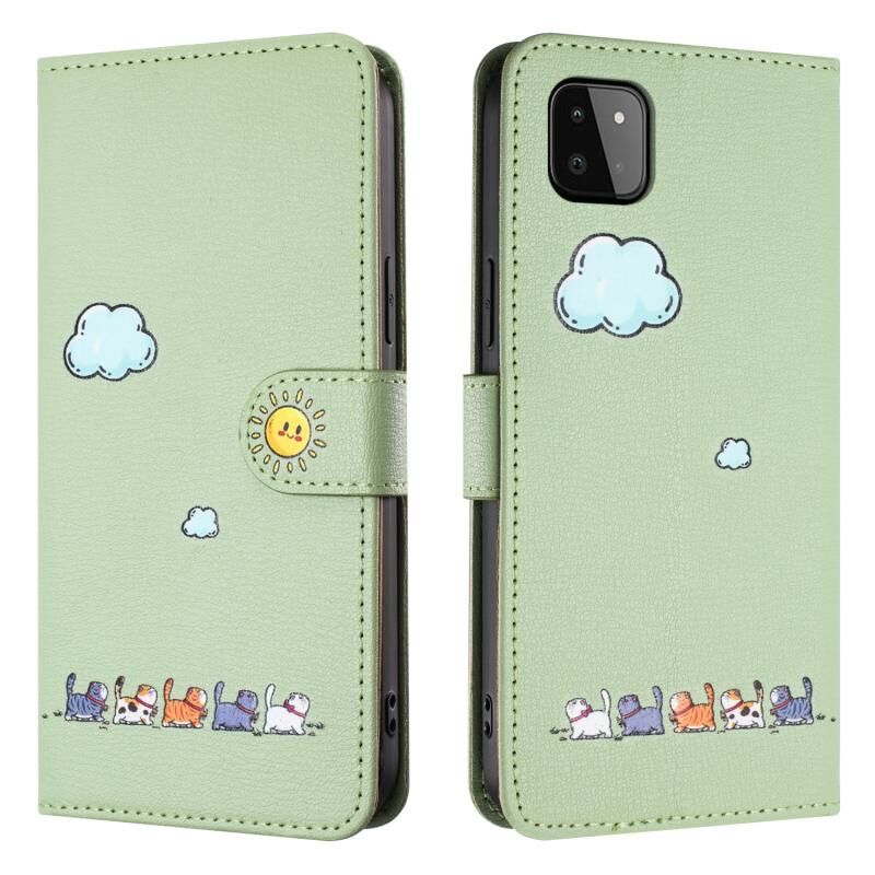 Θήκη τηλεφώνου Samsung Galaxy A22 5G από δέρμα με σχέδια χαριτωμένων γατών (Κόκκινο)
