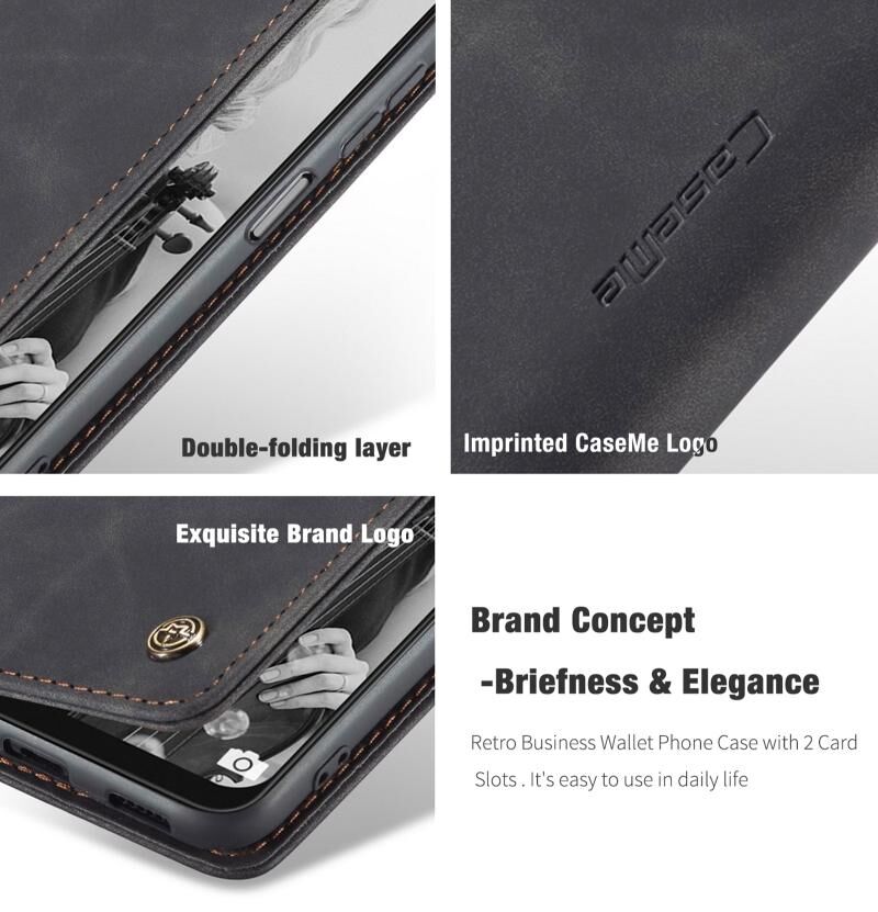 Θήκη CaseMe 013 πολυλειτουργική οριζόντια δερμάτινη θήκη για Samsung Galaxy A22 5G με υποδοχή κάρτας & βάση & πορτοφόλι (Μαύρο) (Μαύρο)