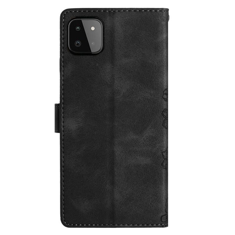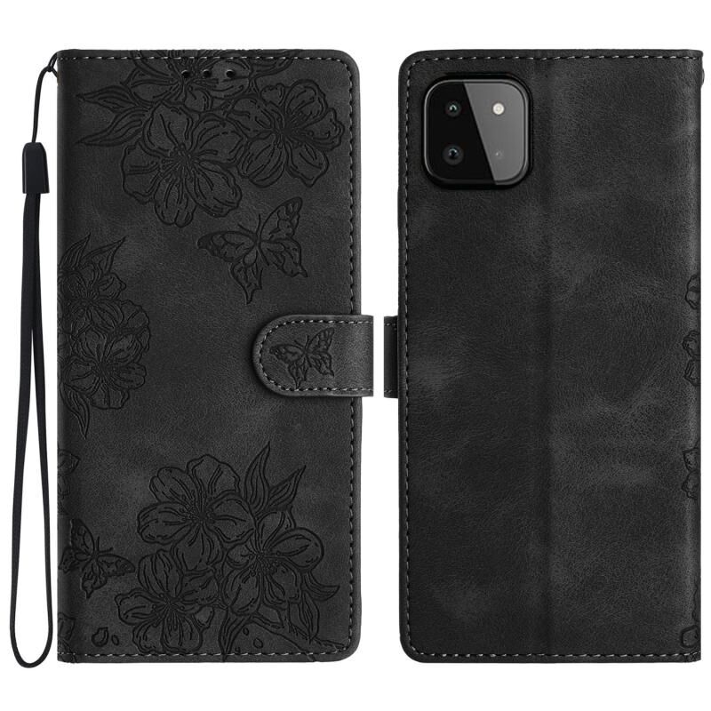 Θήκη τηλεφώνου Samsung Galaxy A22 5G Cherry Blossom Butterfly με ανάγλυφο PU υφή δέρματος (Μαύρο)