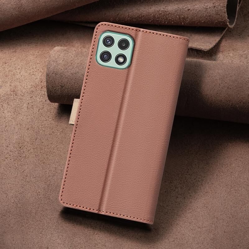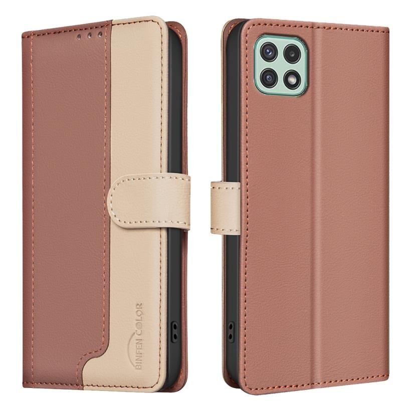 Θήκη τηλεφώνου δερμάτινη με τεχνολογία RFID κατά της κλοπής και αντιστοίχιση χρώματος για Samsung Galaxy A22 5G (Καφέ)