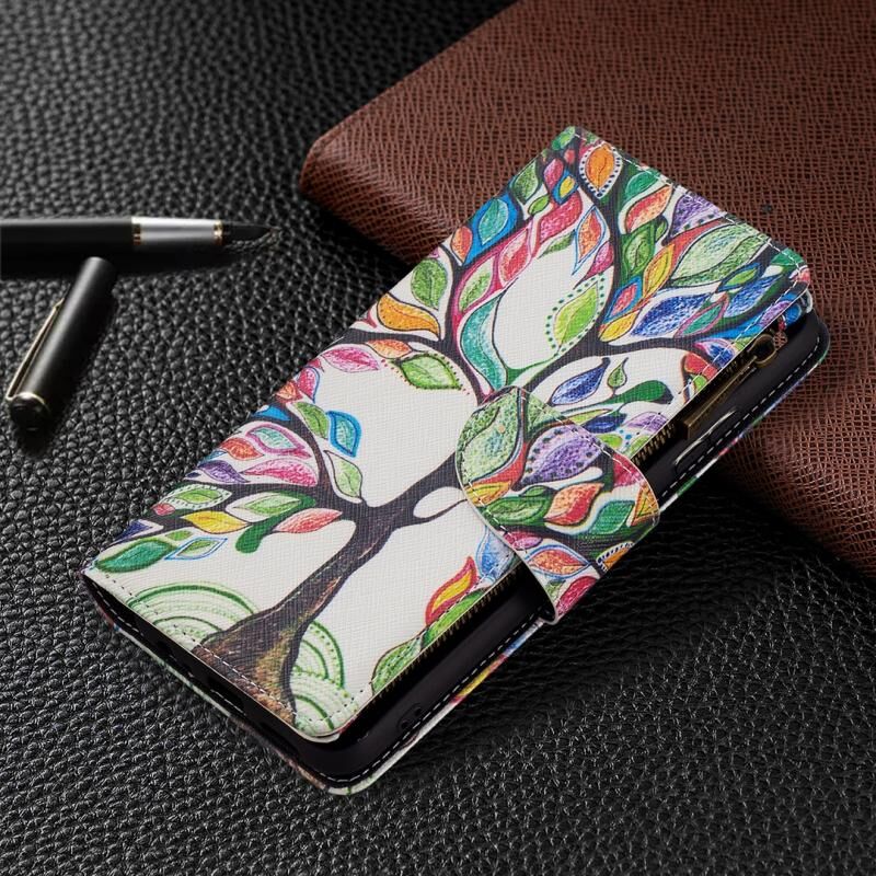 Θήκη Samsung Galaxy A22 5G με σχέδιο ζωγραφικής, χρώματος, οριζόντια αναδιπλούμενη από δέρμα με βάση στήριξης & υποδοχές καρτών & πορτοφόλι (Κόκκινο)