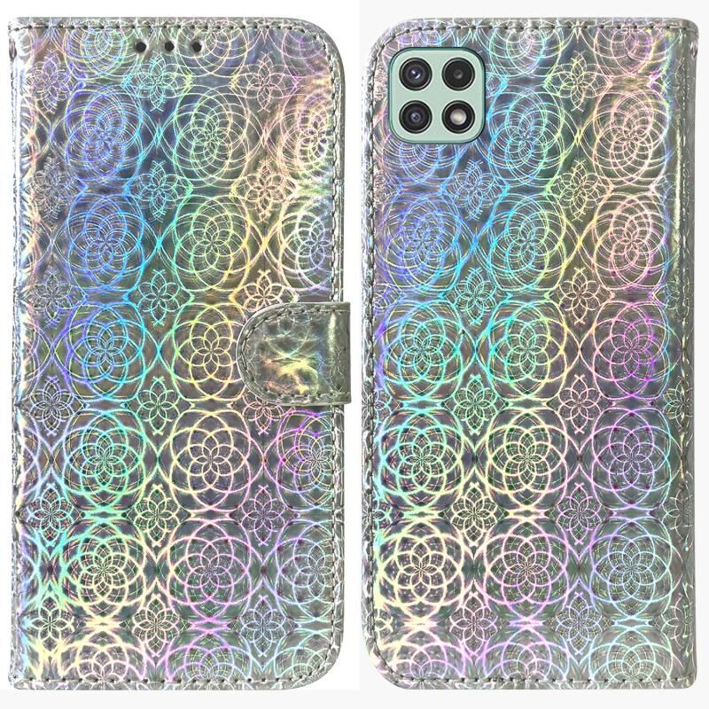 Για Samsung Galaxy A22 5G Πολύχρωμο μαγνητική πόρπη δερμάτινη θήκη τηλεφώνου (ασημί)
