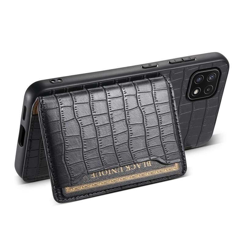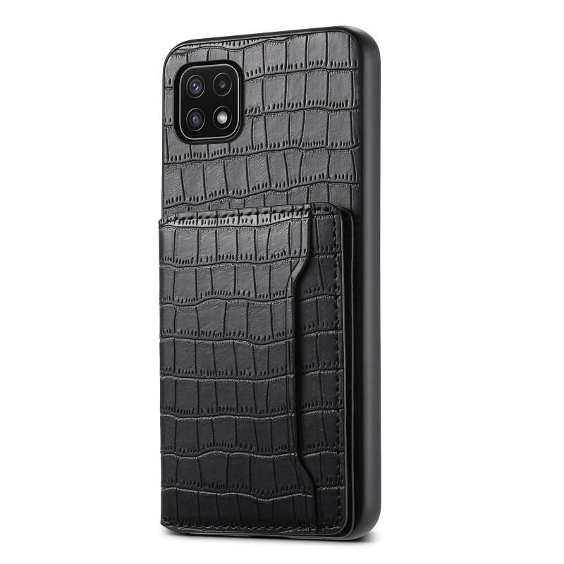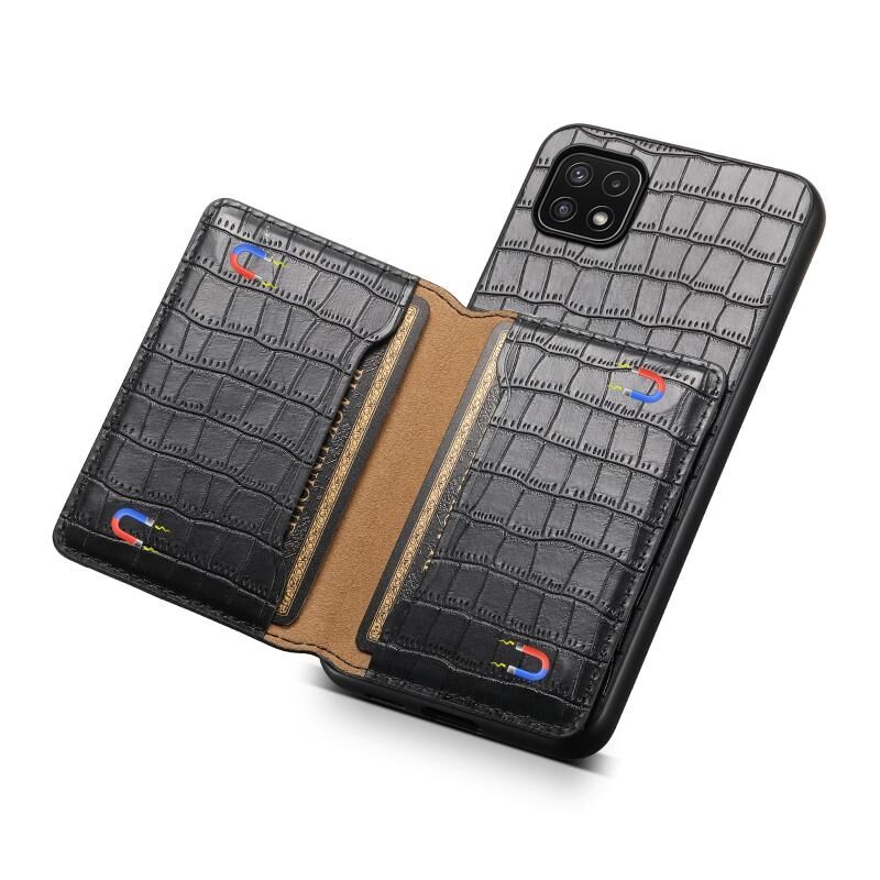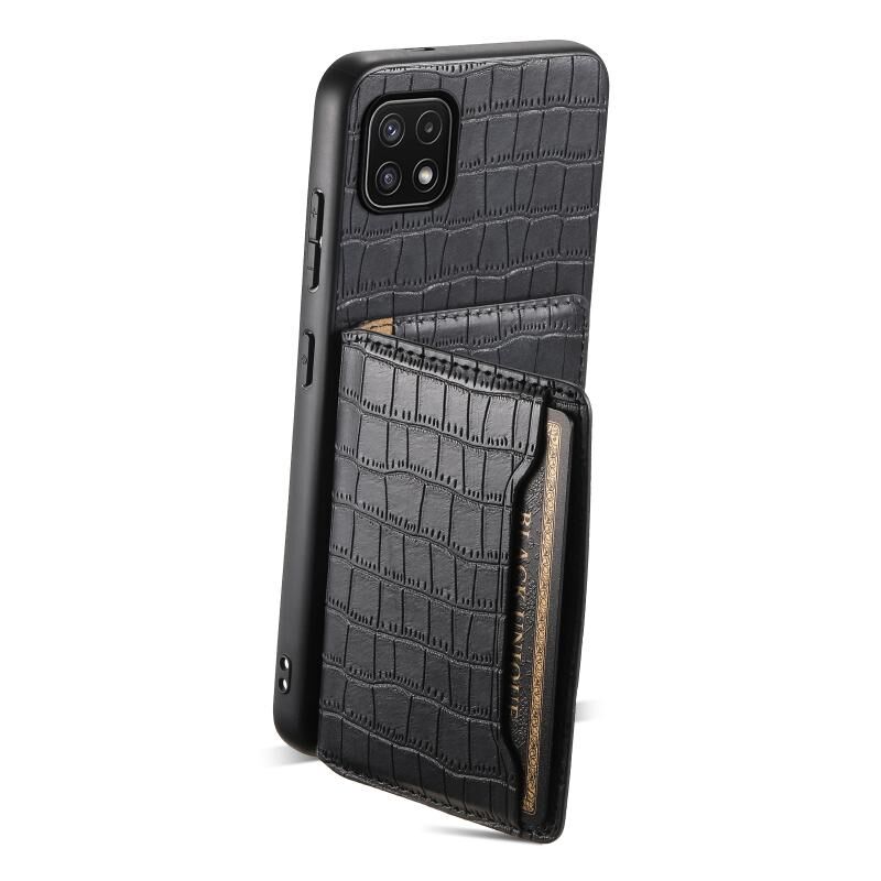 Θήκη κινητού τηλεφώνου πλήρους κάλυψης με σχέδιο τσάντας κάρτας υφής κροκόδειλου για Samsung Galaxy A22 5G (Καφέ)