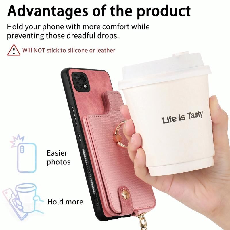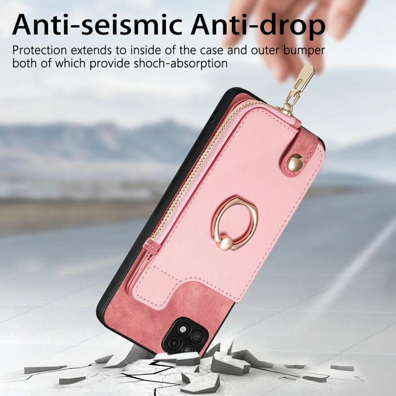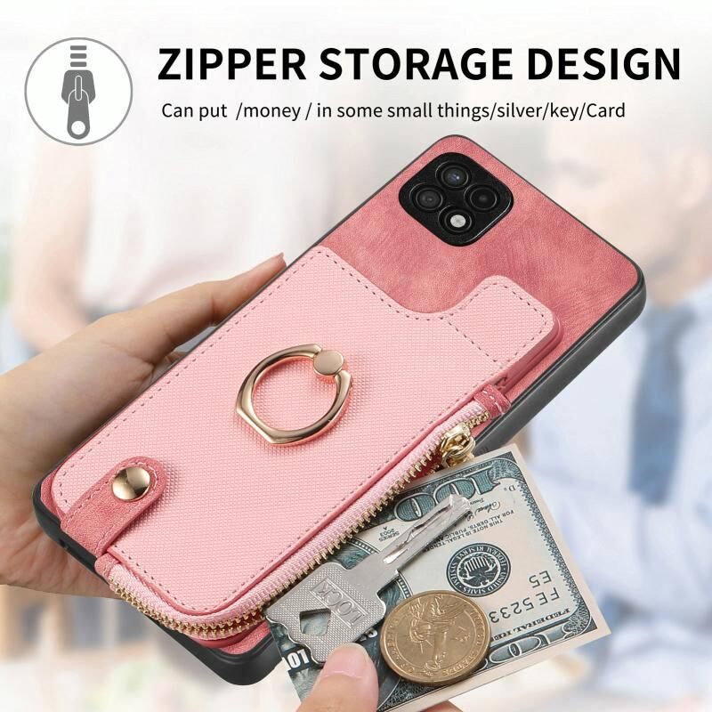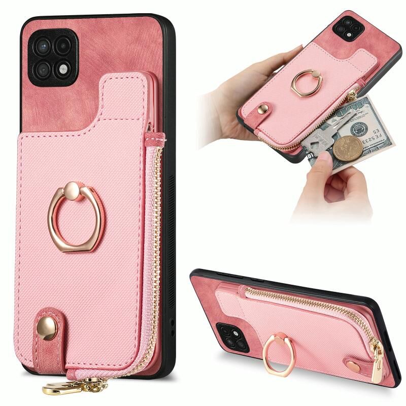 Για Samsung Galaxy A22 5G Cross Δερμάτινο δαχτυλίδι κάθετη φερμουάρ πορτοφόλι πίσω υπόθεση τηλεφώνου (ροζ)
