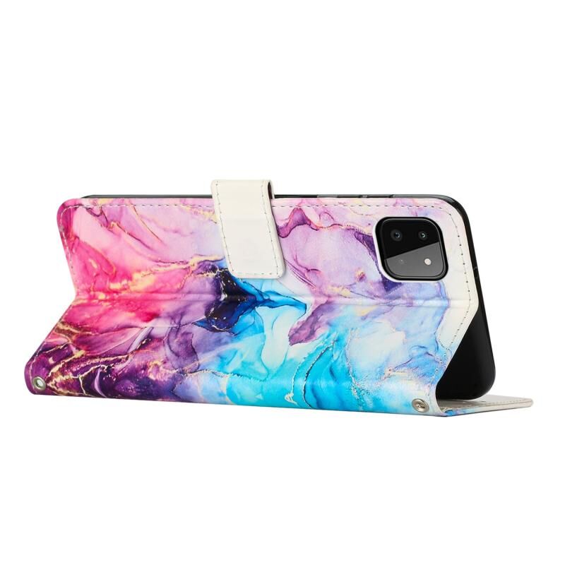 Θήκη τηλεφώνου Samsung Galaxy A22 5G, τύπου crossbody, δερμάτινη με ζωγραφιστό σχέδιο μαρμάρου (Μωβ)