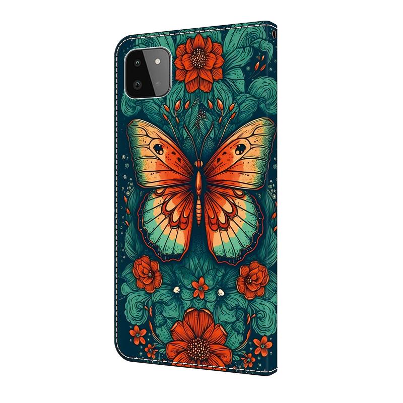 For Samsung Galaxy A22 5G Crystal Painted Leather Phone case(Flower Butterfly)