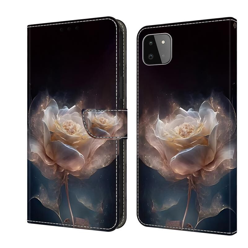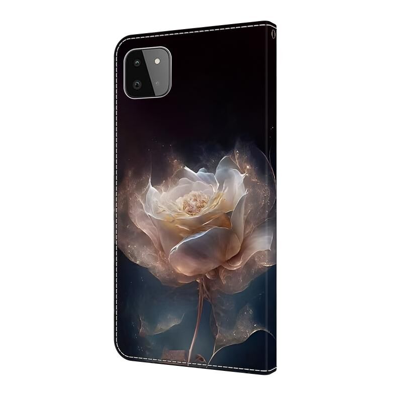 Θήκη τηλεφώνου Samsung Galaxy A22 5G από δέρμα με κρυστάλλινη ζωγραφική (Παιώνια)