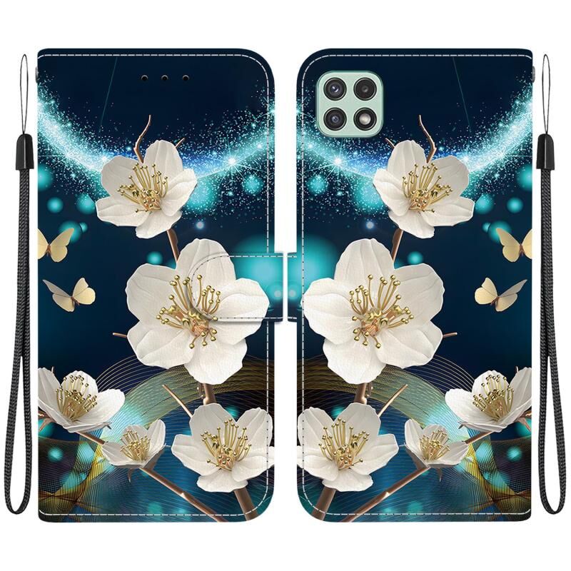 Θήκη τηλεφώνου Samsung Galaxy A22 5G από δέρμα με πολύχρωμη σχεδίαση κρυστάλλινης υφής (Μαγνολία)