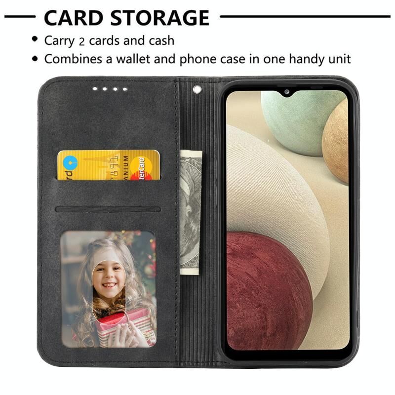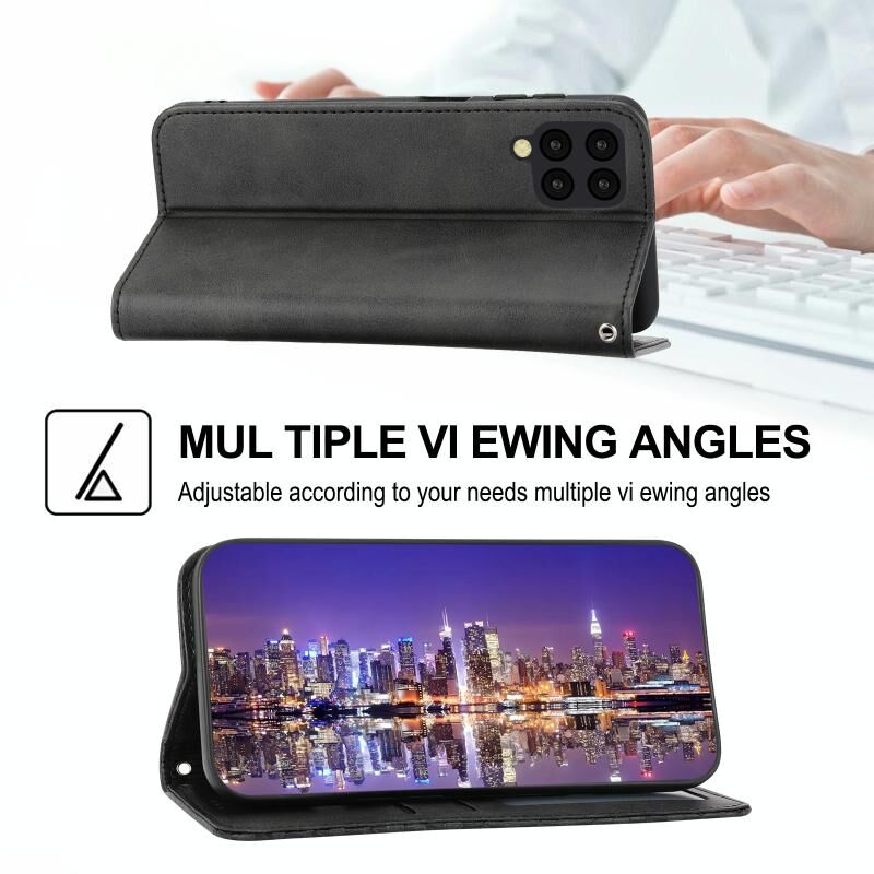 Για Samsung Galaxy A22 5G Cubic Grid Calf υφή μαγνητικό κλείσιμο δερμάτινη θήκη τηλεφώνου (μαύρο)