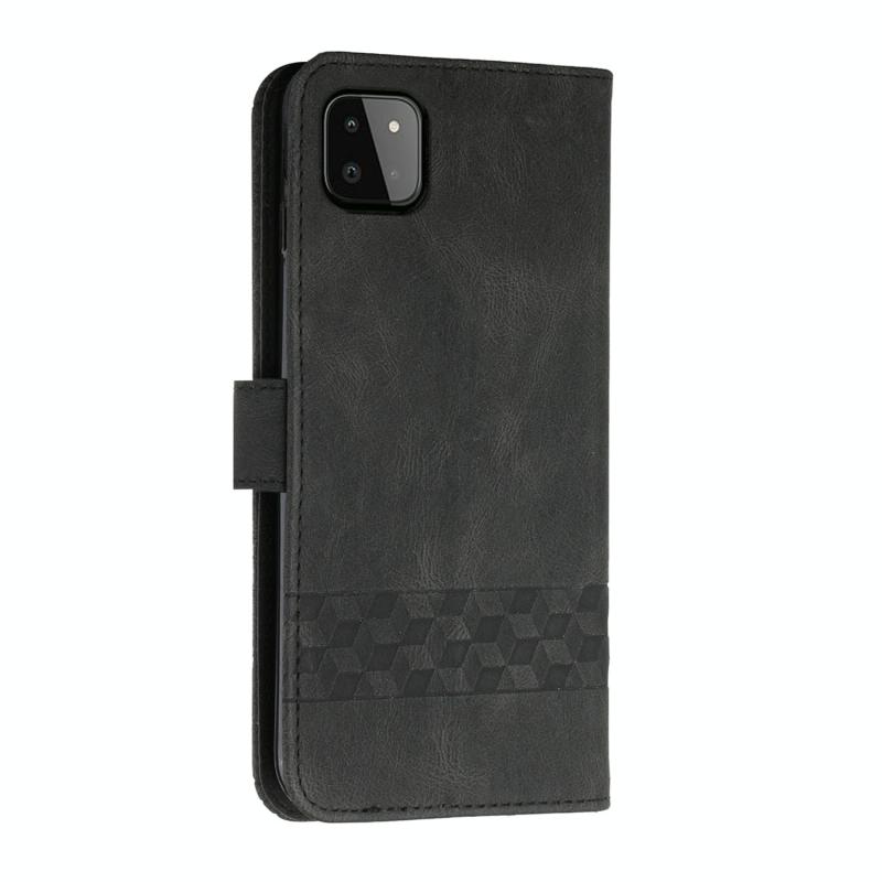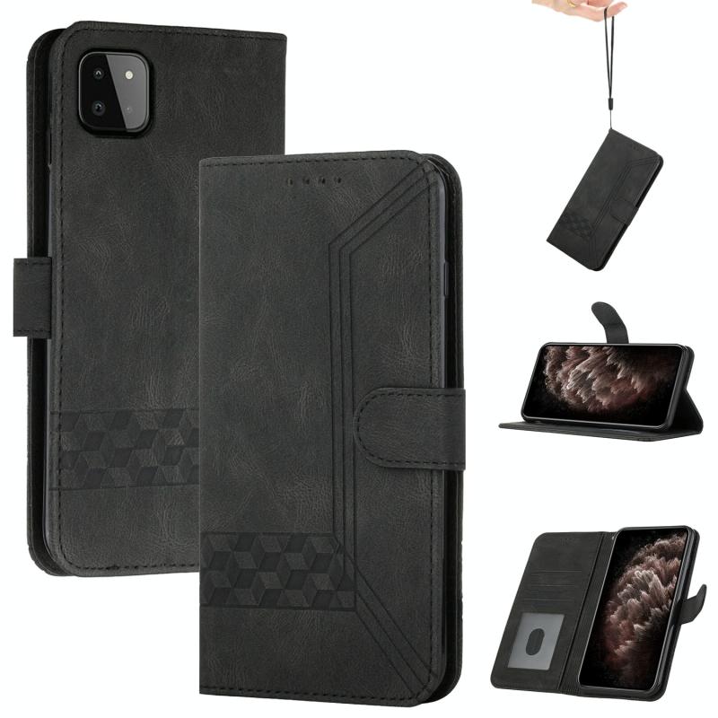 For Samsung Galaxy A22 5G Cubic Skin Feel Flip Leather Phone Case(Black)