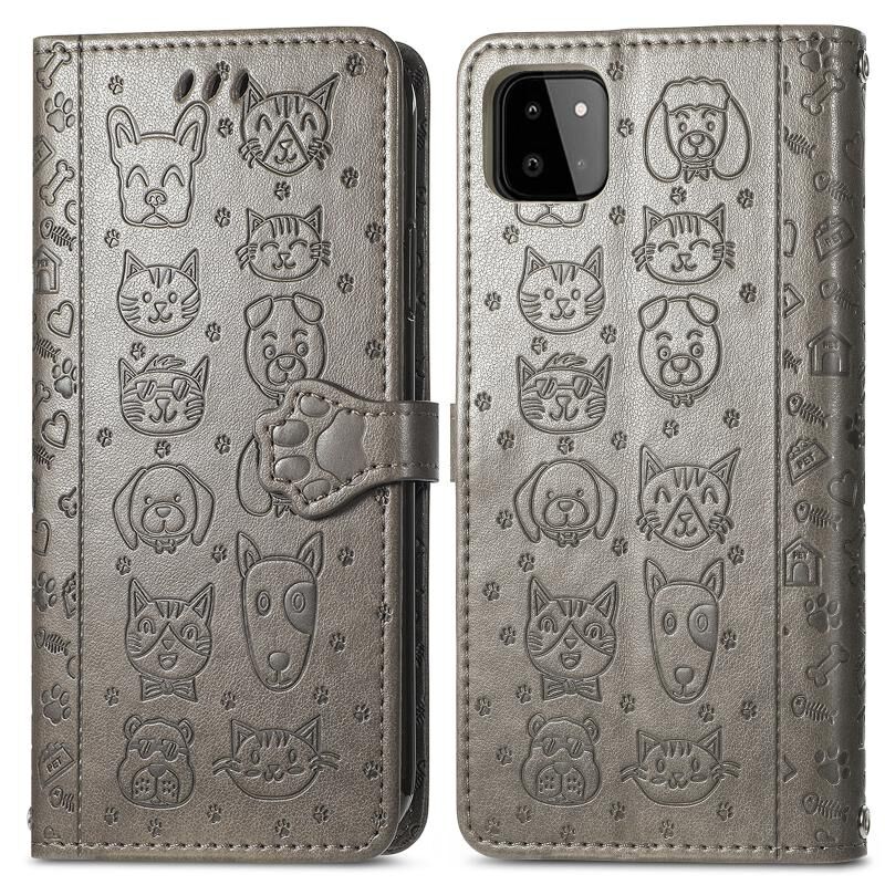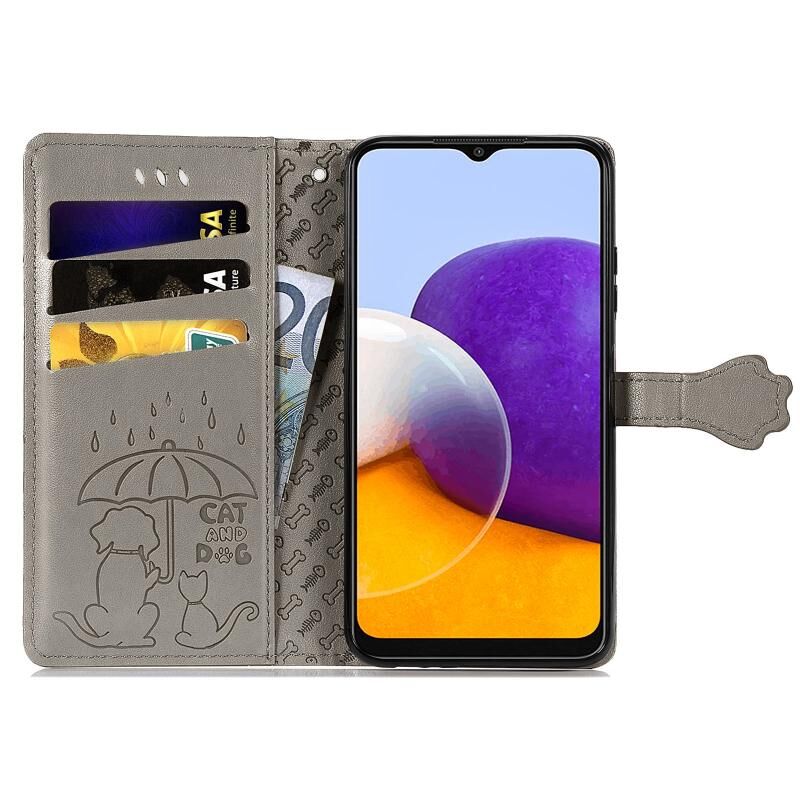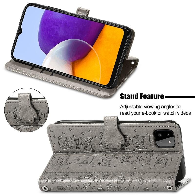 Θήκη Samsung Galaxy A22 5G, χαριτωμένη ανάγλυφη θήκη flip από δέρμα με σχέδια γάτας και σκύλου, με βάση στήριξης, θήκες για κάρτες, πορτοφόλι, λουρί crossbody και κάλυμμα καρτών (Μπλε)