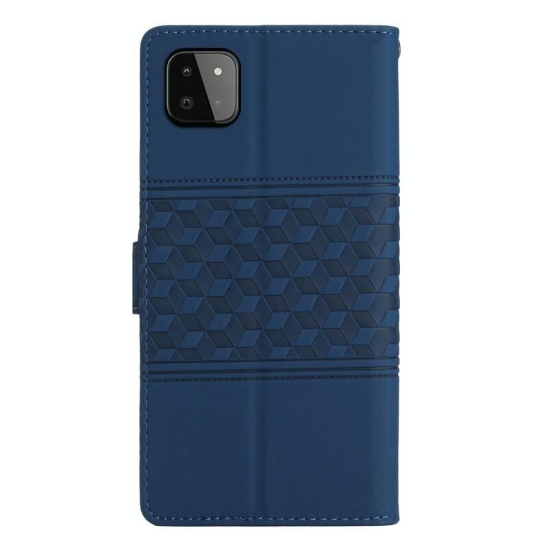 Για Samsung Galaxy A22 5G Diamond ανάγλυφο δέρμα αίσθηση δέρμα τηλέφωνο υπόθεση με κορδόνι (σκούρο μπλε)