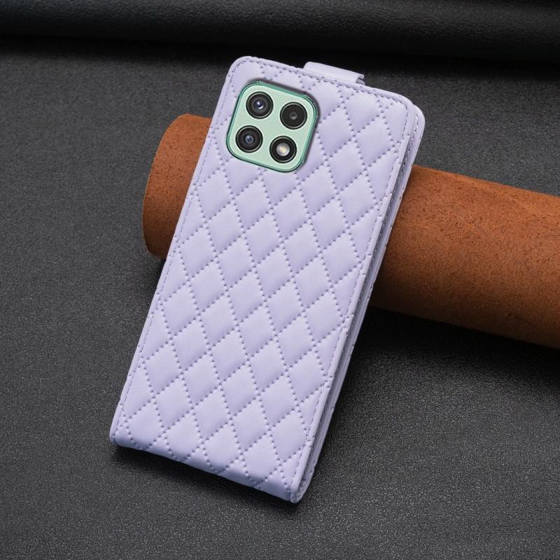 For Samsung Galaxy A22 5G Diamond Lattice Vertical Flip Leather Phone Case(Purple)