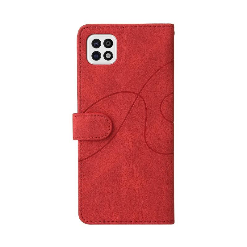 Για Samsung Galaxy A22 5G Διπλό χρώμα Splicing οριζόντια Flip PU δέρμα υπόθεση με θήκη & υποδοχές για κάρτες & πορτοφόλι (κόκκινο)