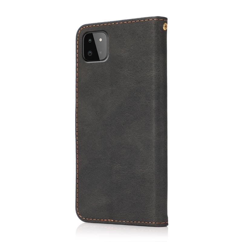 Θήκη τηλεφώνου Samsung Galaxy A22 5G από δέρμα με διχρωμία ραφής (Μαύρο καφέ)