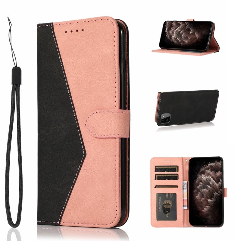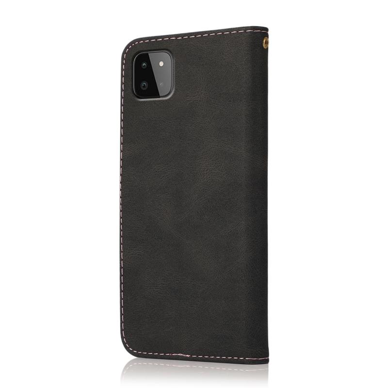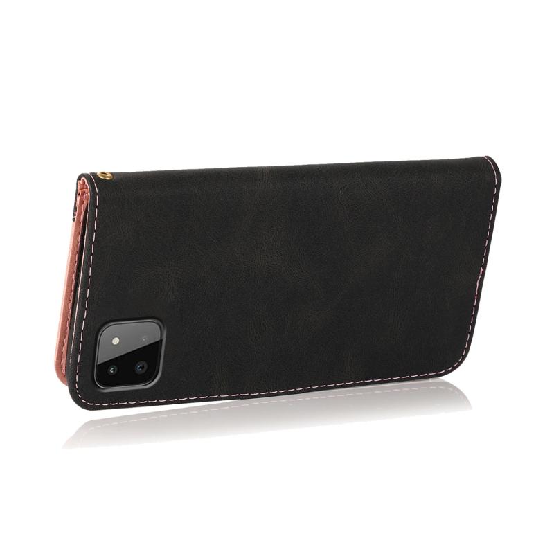 Θήκη τηλεφώνου Samsung Galaxy A22 5G από δέρμα με διχρωμία ραφής (Μαύρο Ροζ Χρυσό)