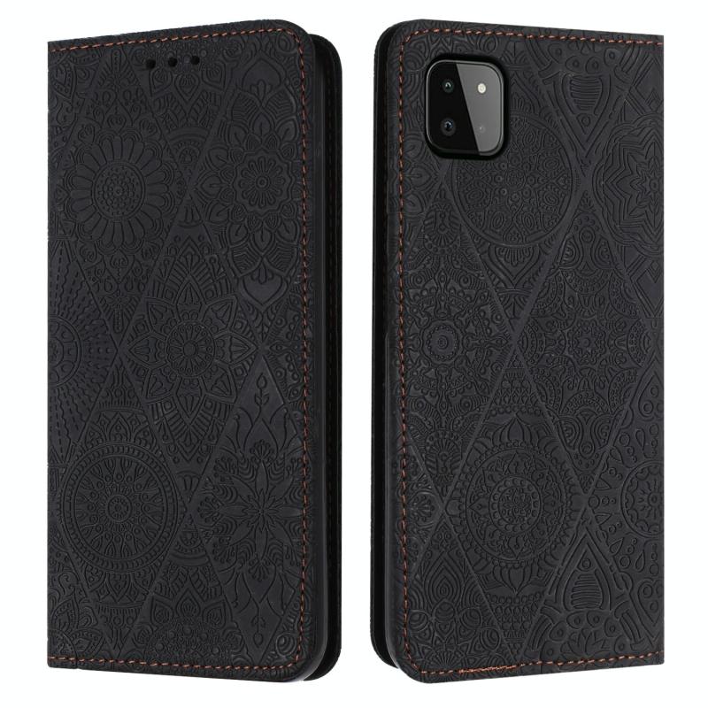 Θήκη τηλεφώνου Samsung Galaxy A22 5G από δέρμα με έθνικ ανάγλυφο και απορρόφηση (Μαύρο)