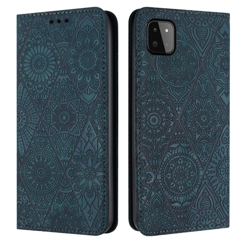 Θήκη τηλεφώνου Samsung Galaxy A22 5G από δέρμα με έθνικ ανάγλυφο και απορρόφηση (Μπλε)