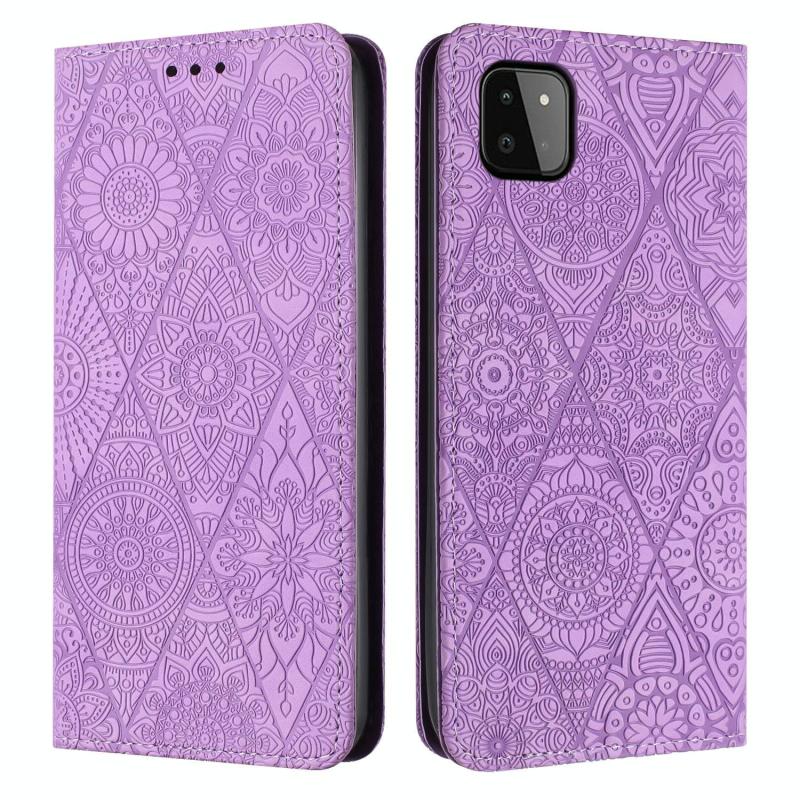 Θήκη τηλεφώνου Samsung Galaxy A22 5G από δέρμα με έθνικ ανάγλυφο και απορρόφηση (Μωβ)