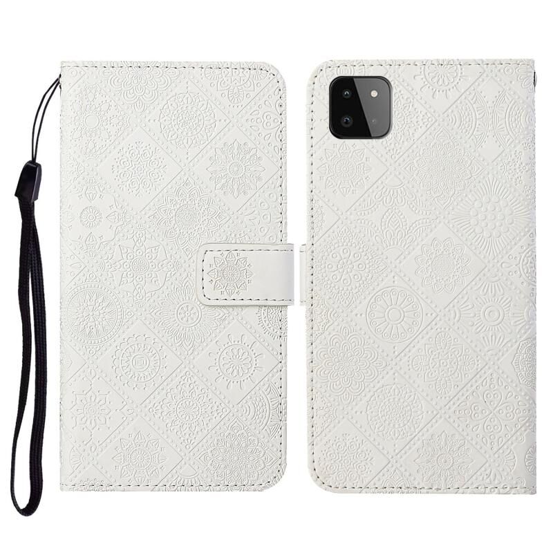 Για Samsung Galaxy A22 5G Ethnic Style ανάγλυφο μοτίβο οριζόντια Flip δερμάτινη θήκη με θήκη & υποδοχές για κάρτες & πορτοφόλι & κορδόνι (λευκό)