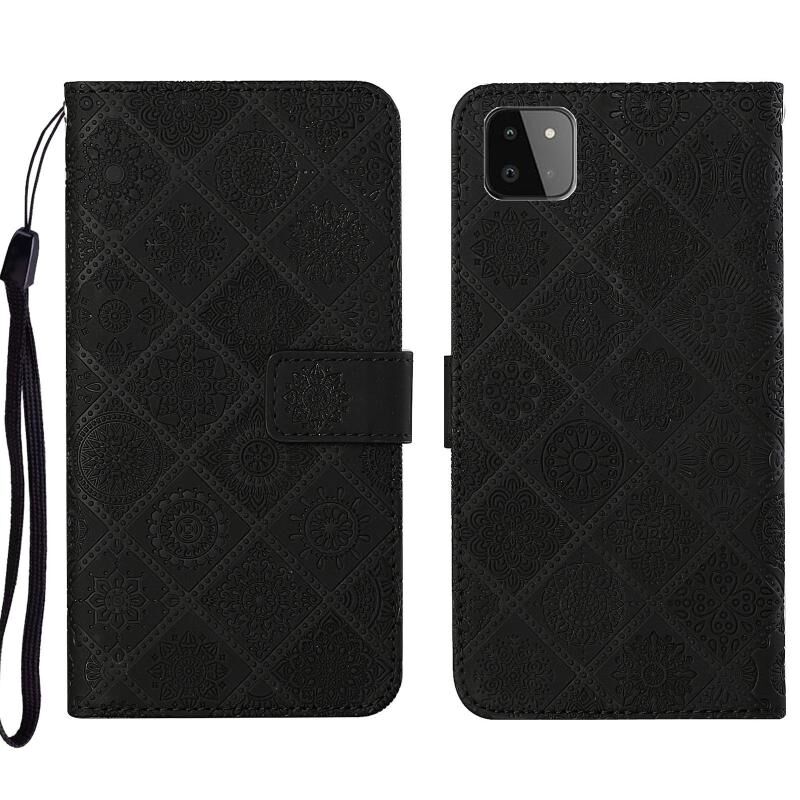 Για Samsung Galaxy A22 5G Ethnic Style ανάγλυφο μοτίβο δερμάτινη θήκη τηλεφώνου (μαύρο)