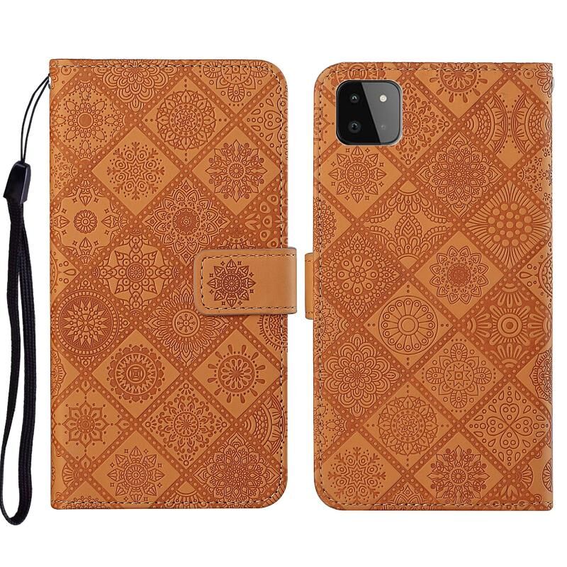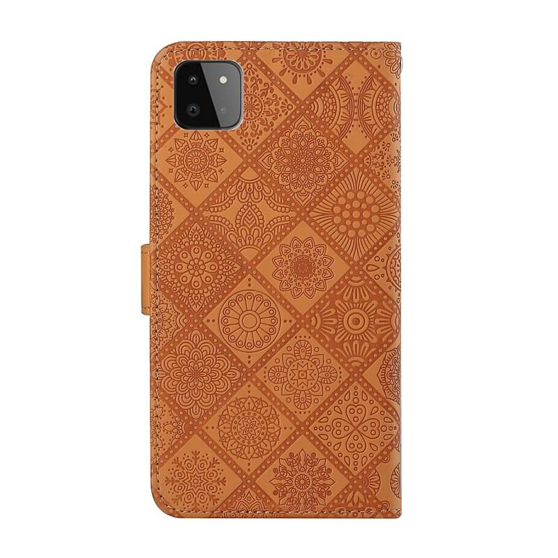Για Samsung Galaxy A22 5G Ethnic Style ανάγλυφο μοτίβο δερμάτινη θήκη τηλεφώνου (καφέ)