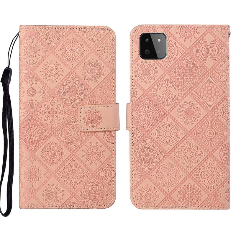 Για Samsung Galaxy A22 5G Ethnic Style ανάγλυφο μοτίβο δερμάτινη θήκη τηλεφώνου (ροζ)