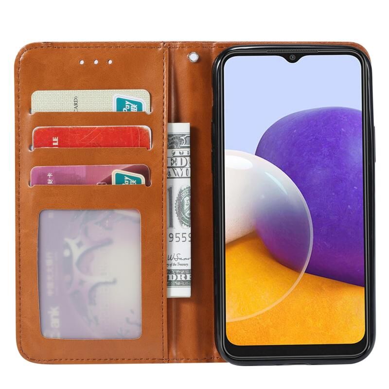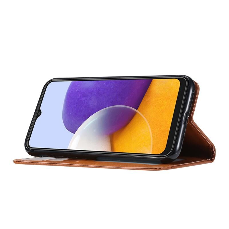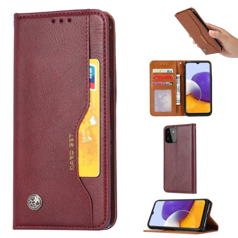 Για Samsung Galaxy A22 5G EU Version Knead Skin Texture Horizontal Flip Leather Case με πλαίσιο φωτογραφιών & κάτοχος & υποδοχές καρτών & πορτοφόλι (Κρασοκόκκινο)