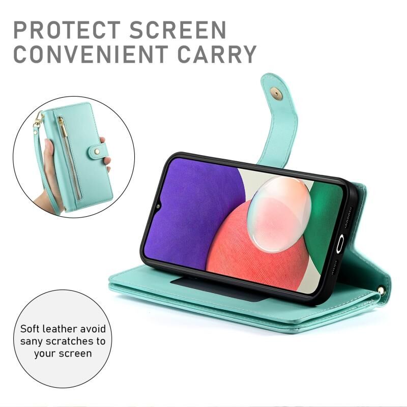 Για Samsung Galaxy A22 5G / F42 5G Nine Card-slot φερμουάρ πορτοφόλι τσάντα δερμάτινη θήκη τηλεφώνου (πράσινο μέντα)