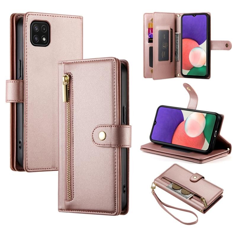 Για Samsung Galaxy A22 5G / F42 5G Nine Card-slot φερμουάρ πορτοφόλι τσάντα δερμάτινη θήκη τηλεφώνου (ροζ)