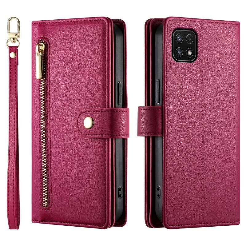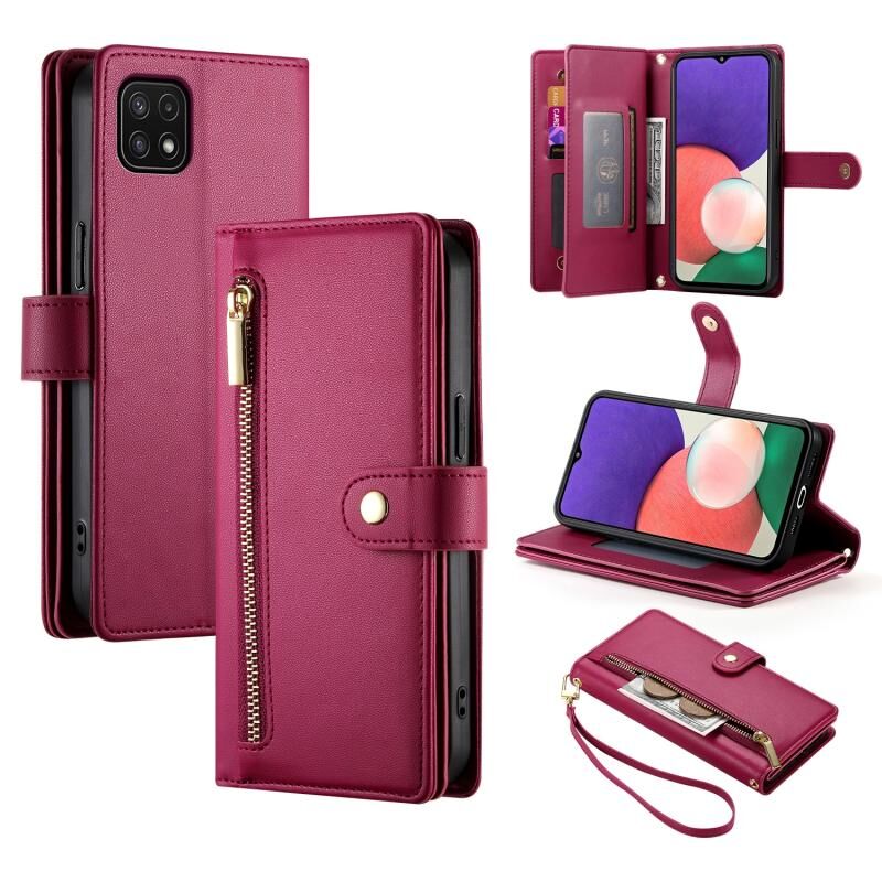 Για Samsung Galaxy A22 5G / F42 5G Nine Card-slot φερμουάρ πορτοφόλι τσάντα δερμάτινη θήκη τηλεφώνου (κόκκινο)