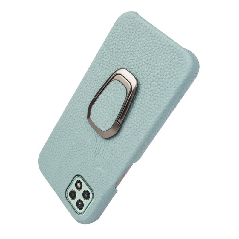 Θήκη τηλεφώνου από γνήσιο δέρμα με υφή λύτσι για Samsung Galaxy A22 5G/F42 5G (Κυανό) με δακτύλιο στήριξης.