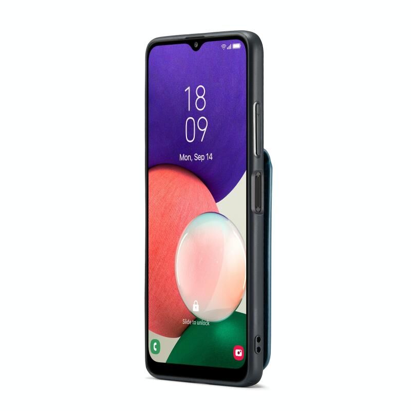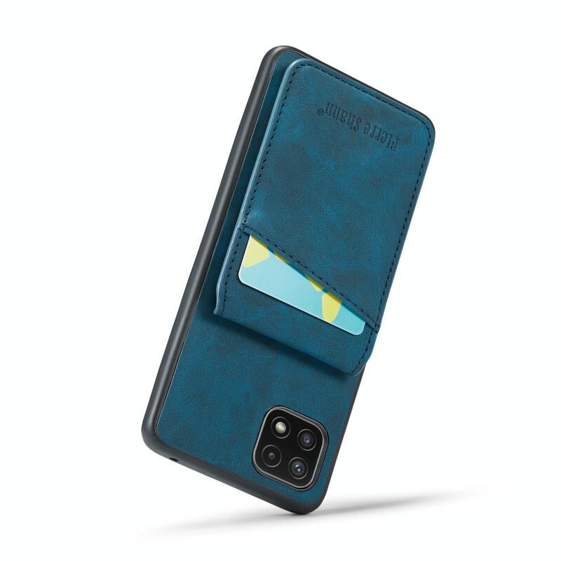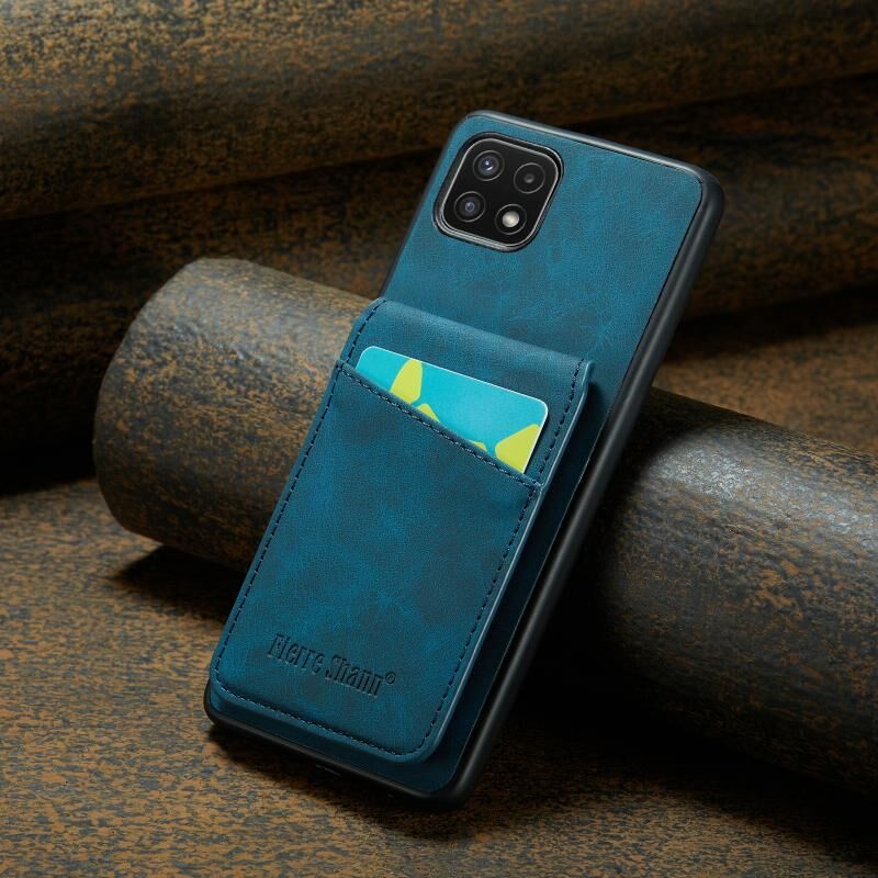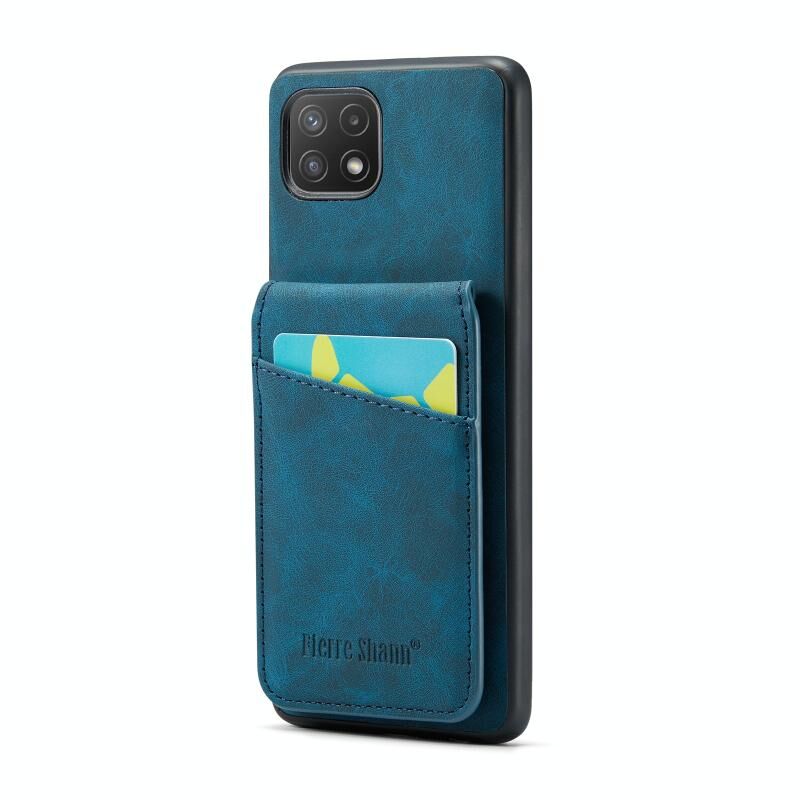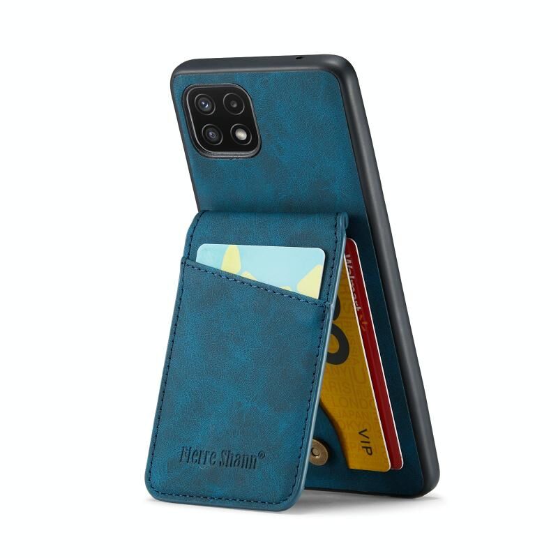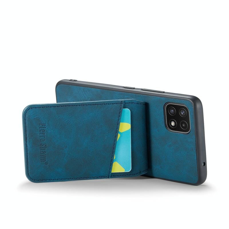 Για Samsung Galaxy A22 5G Fierre Shann Crazy Horse κάρτα κάτοχος κάτοχος πίσω κάλυμμα PU υπόθεση τηλεφώνου (μπλε) (Μπλε)