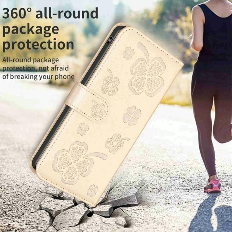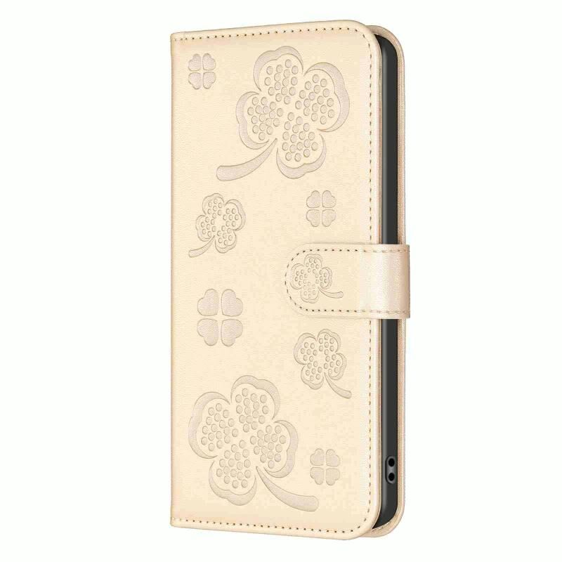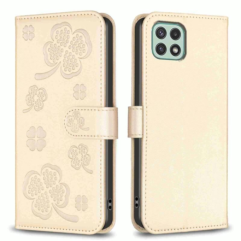 Για Samsung Galaxy A22 5G τετράφυλλο ανάγλυφη δερμάτινη θήκη τηλεφώνου (χρυσό)