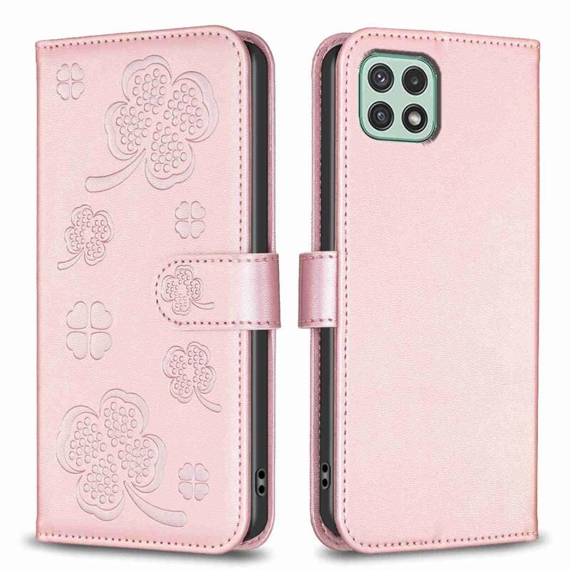 Για Samsung Galaxy A22 5G τετράφυλλο ανάγλυφη δερμάτινη θήκη τηλεφώνου (ροζ)