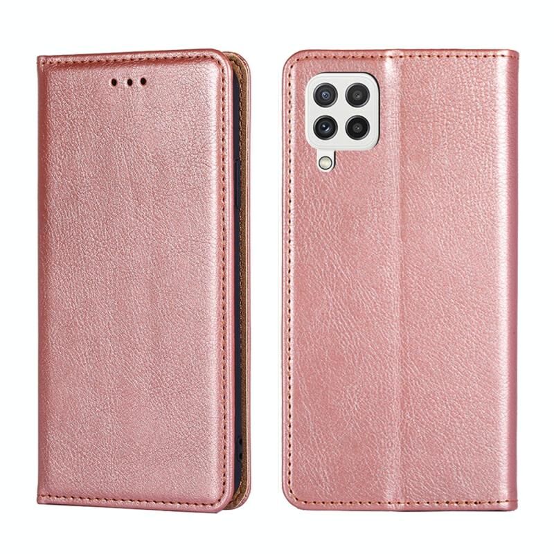 Για Samsung Galaxy A22 5G Γυαλιστερό λάδι στερεό χρώμα μαγνητική δερμάτινη θήκη τηλεφώνου (ροζ χρυσό)